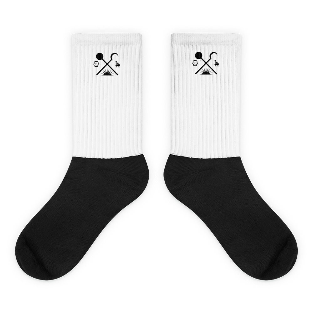 Not all dark soles are bad. These cushioned black bottom socks feel great and look fresh with with a white upper ribbed leg rocking the cult icon.